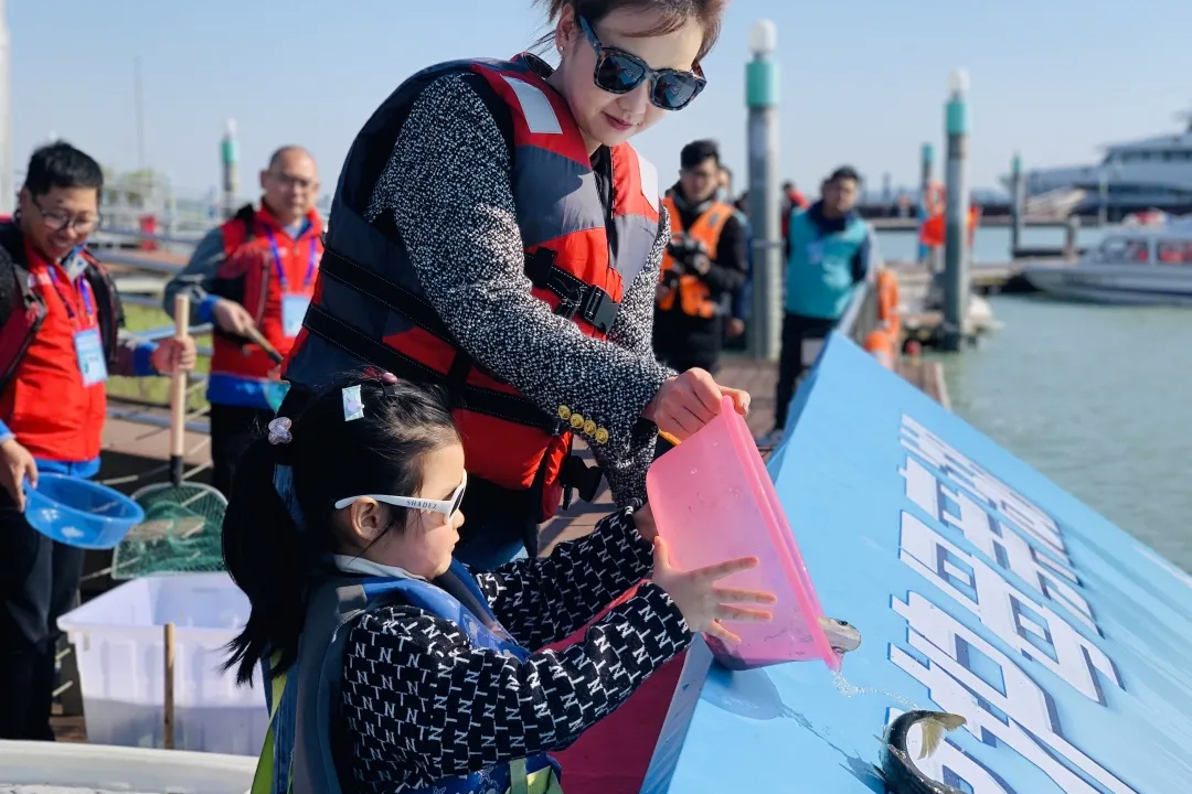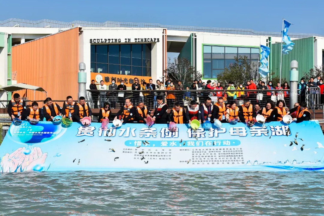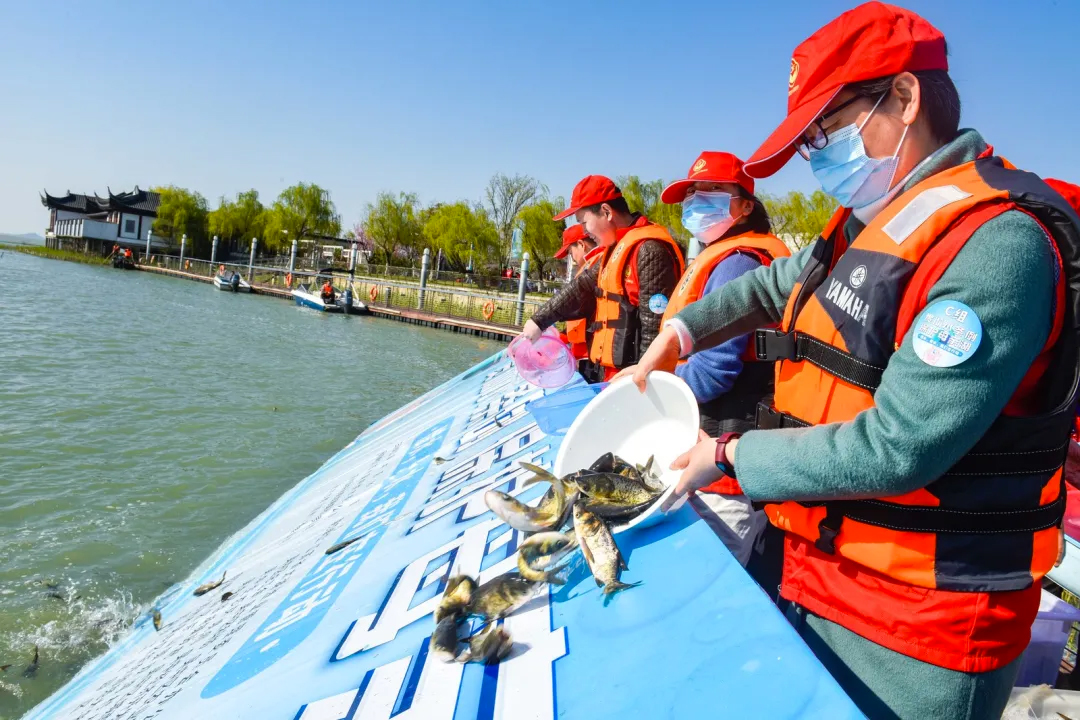 隨著小朋友們整齊的呼喊聲,一盆盆鮮活蹦跳的花白鰱魚(yú)苗,被投入到太湖中。數(shù)不清的魚(yú)兒在澄凈的太湖水中暢游,呈現(xiàn)出一派生機(jī)!