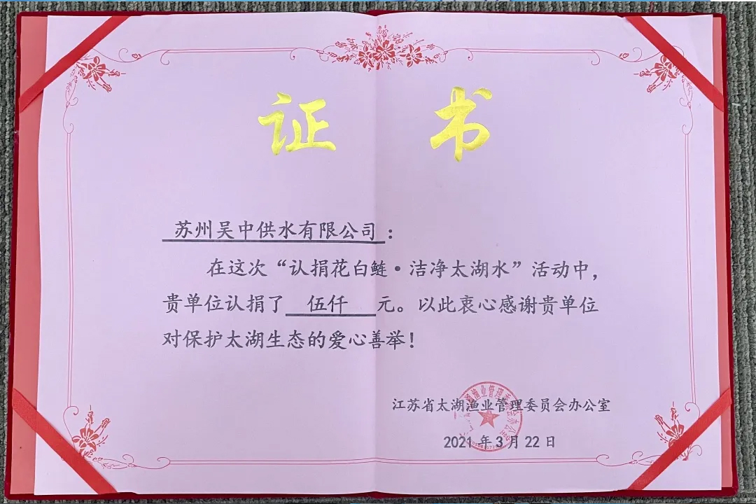 今年,吳中供水共籌集5000元(包含愛(ài)心充值活動(dòng)總金額的百分之一的善款)用于購(gòu)買放生的花白鰱魚(yú)苗。